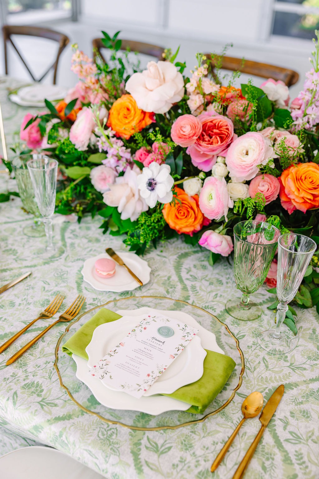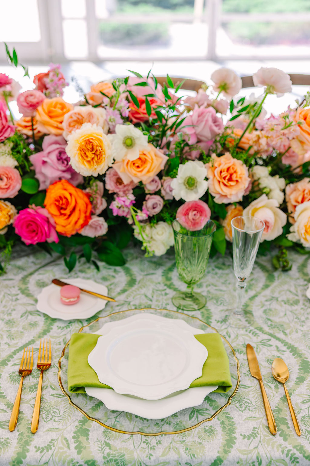 - Grace Etched Moss Water Goblets & Champagne Glasses: These stunning pieces introduced the perfect touch of vintage color. The delicate etched pattern added refinement, while the subtle green hue of the water goblet tied into the natural, garden-like surroundings.