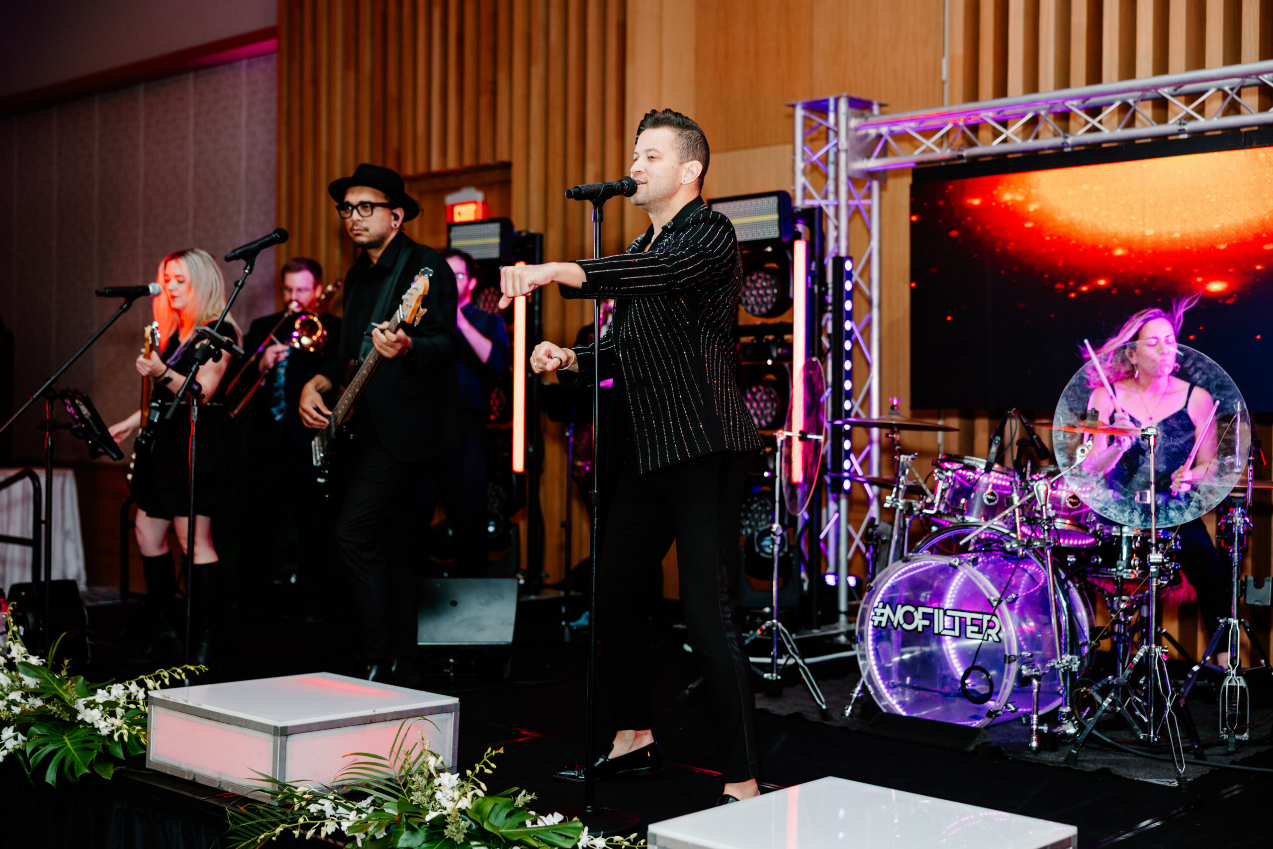 When it was time to party, the No Filter Band took the stage and absolutely electrified the room. Unlike a traditional wedding band, they brought a concert-level energy that kept the dance floor packed.