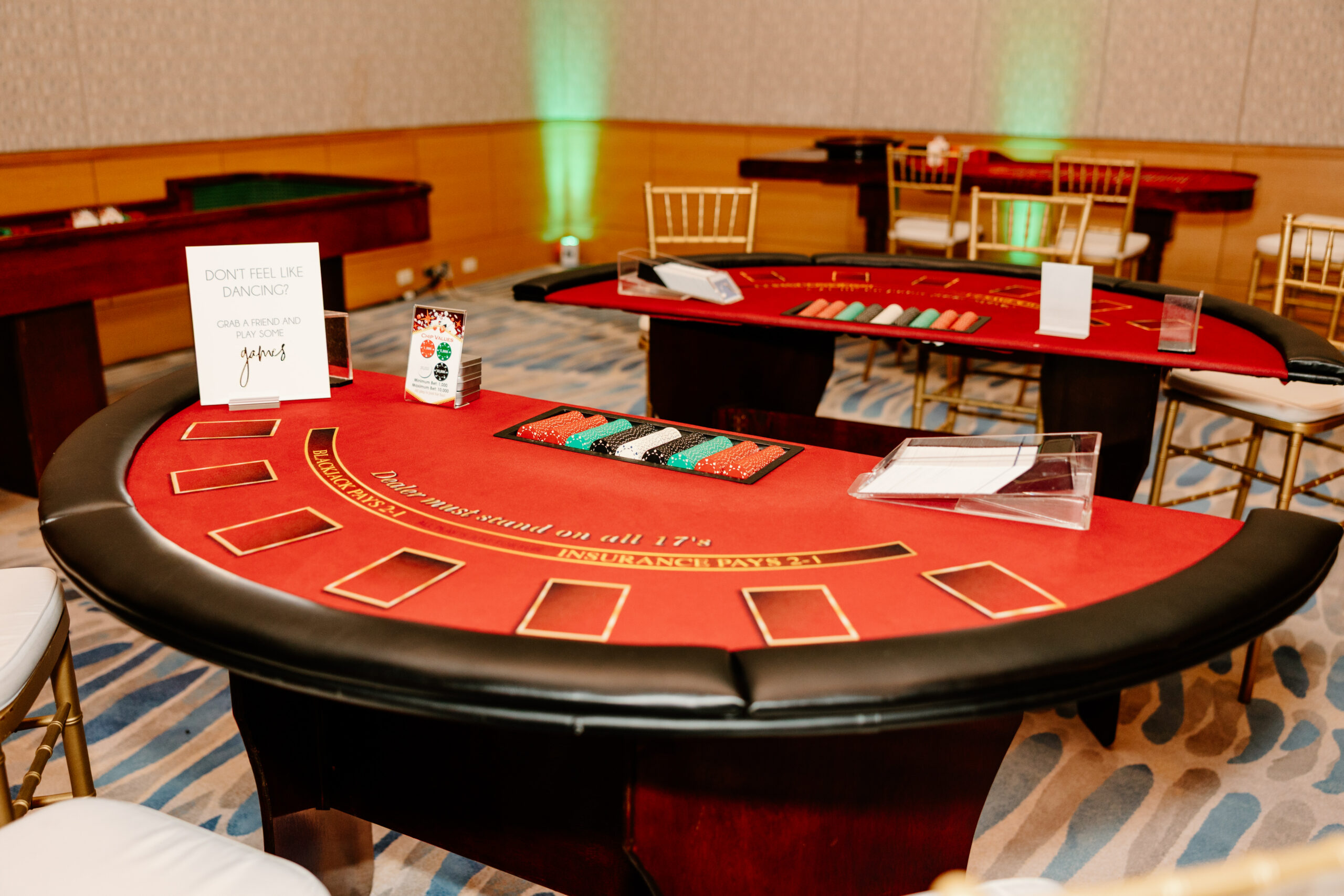 Moreover, Morgan and Bryan wanted to ensure every guest had a fantastic time, even those who prefer chatting over dancing. Therefore, to accomplish this, they incorporated a full casino experience provided by Funplanners.