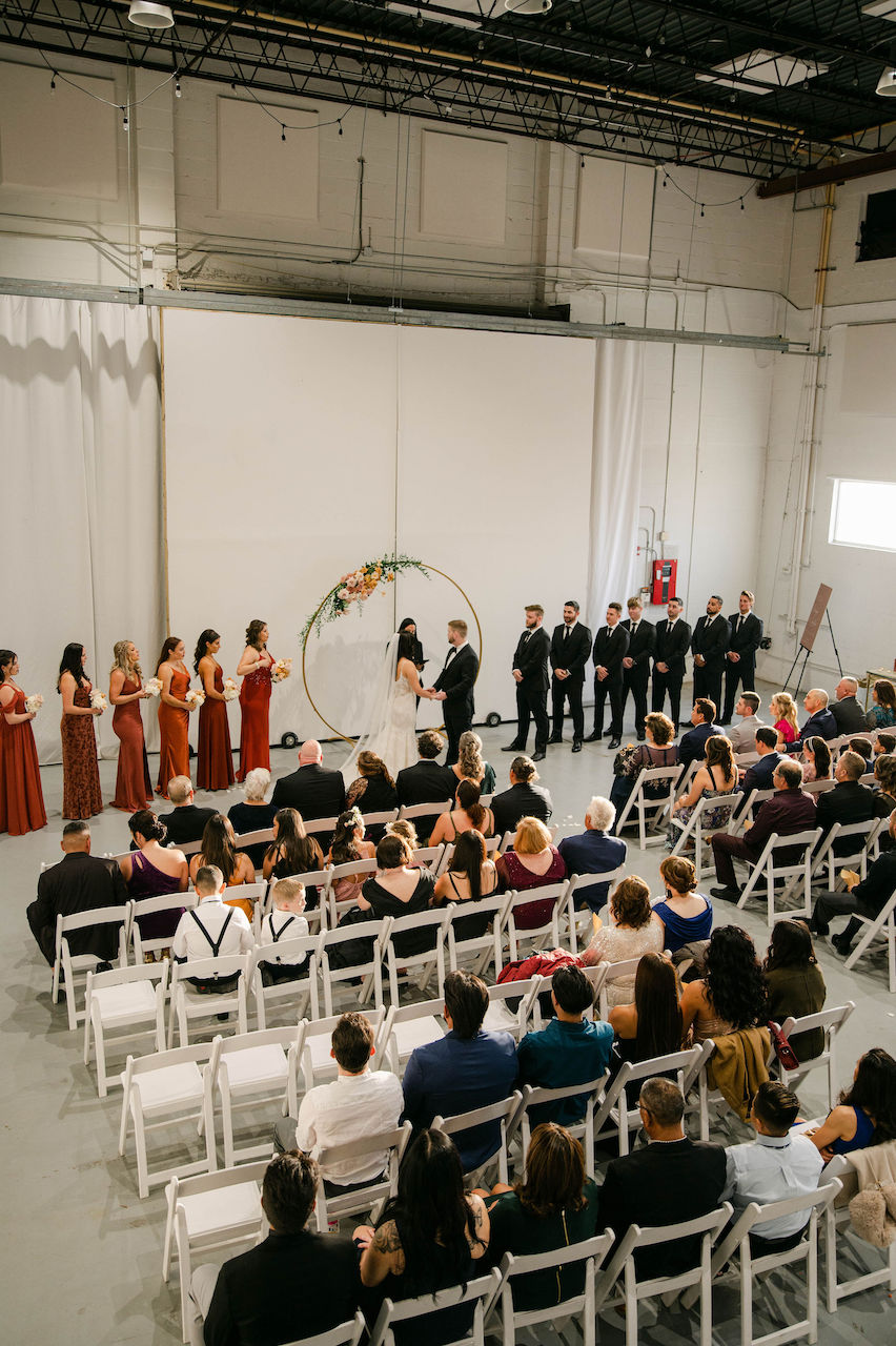 Event Location: Orlando, FL / Photographers: Earthmuse Photography, Love, Asha Photography, and Amanda Lenhardt Photography / Day-Of Coordination: Young Love Events / Floral and Event Design – Head Table + Tables 3, 6: Ashton Events Planning + Design / Floral and Event Design – Personal Flowers + Tables 2, 5: Supposey Wedding Florals / Floral and Event Design – Tables 1, 4: The Treasury Event Rental Studio / Event Design – Ceremony Backdrop + Registration Table: Porch Therapy // 99 MKT / Venue and Cocktail Hour: Orlando Science Center / Wedding Dress: The Collection Bridal / Hair and Makeup: Hairstyles & Makeup By Jackie / Bridesmaids’ Dresses: Brideside / Jewelry: Dora Mae Jewelry / Health and Lifestyle: Skinny Wrap With Jill and Garage Mama Fitness / Tanning Salon: South Beach Tanning Company / Caterer: Puff ‘n Stuff Catering / Wedding Cake: Sweeter Than The Rest / Coffee Bar: Blacksmith Brew Works Craft Coffee Roasters / Ceremony Musician: Perfect Harmony Strings Orlando / DJ: White Rose Entertainment / Photo Booth: Party Shots Orlando / Live Painter: Jacob James Neagle / Rentals: Orlando Weddings and Party Rentals & Fun Factory Entertainment / Vintage Rentals and Dishes: The Treasury Event Rental Studio / Wedding Hangers: Oh Deer Creative / Videography: Brandon Kari Productions / National Travel Vendor: Bliss by Luxury Concierge Travel / National Sparkling Wine Sponsor: Ferrari / Media Partners: MyWedding, Weddings Unveiled Magazine, The Celebration Society, Florida Bride, Beautiful Bride Magazine, and Black Sheep Bride