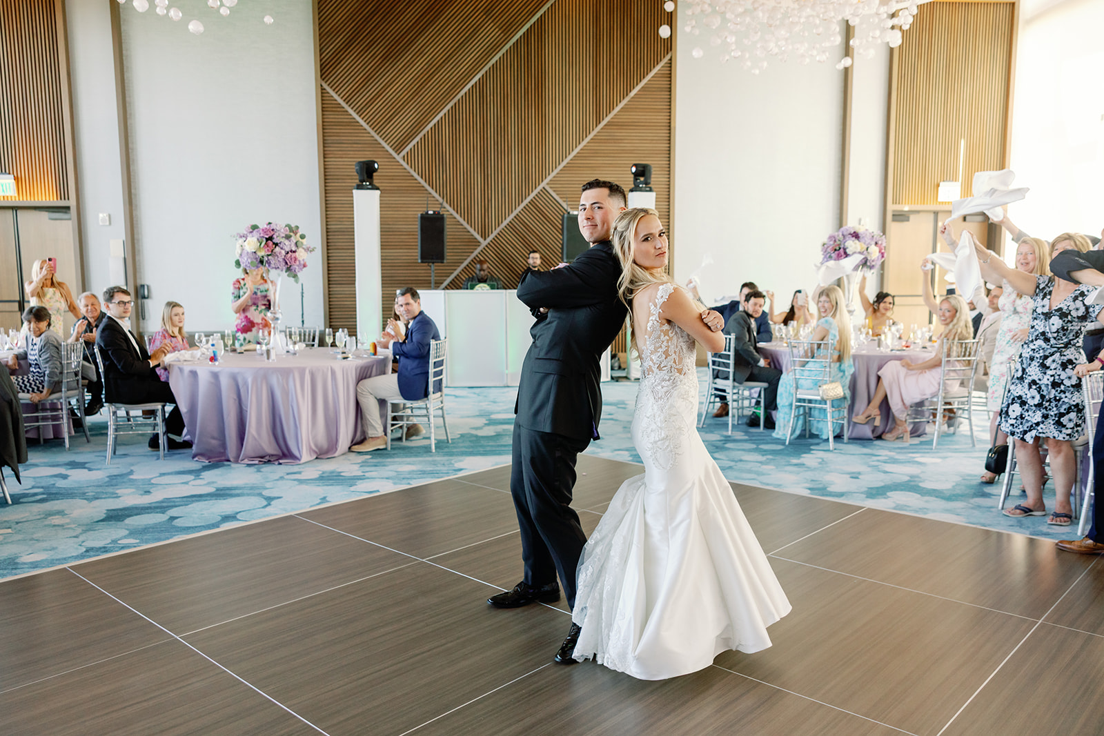 - The “Private First Dance”: Before the doors opened to guests, the couple shared a private first dance in the empty ballroom. This rising trend allows the newlyweds to soak in their reception decor and share a quiet, intimate moment together before the high-energy celebration begins.